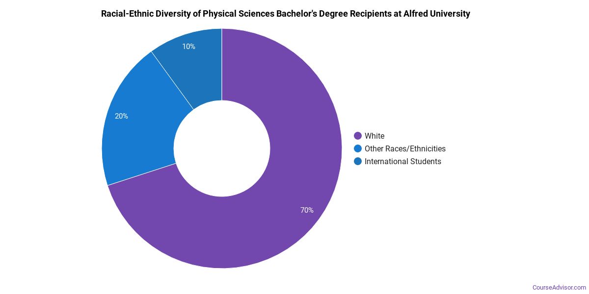About 100% of those who receive a bachelor's degree in physical sciences at Alfred are white. This is above average for this degree on the nationwide level.
