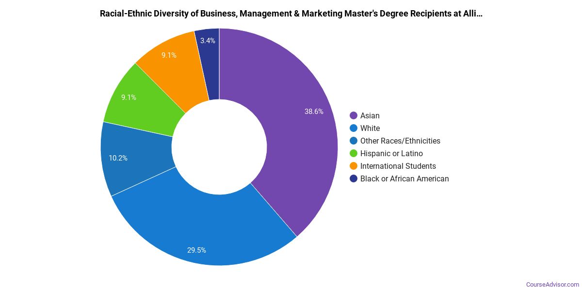 Take a look at the following statistics related to the make-up of the business, management & marketing majors at Alliant International University.