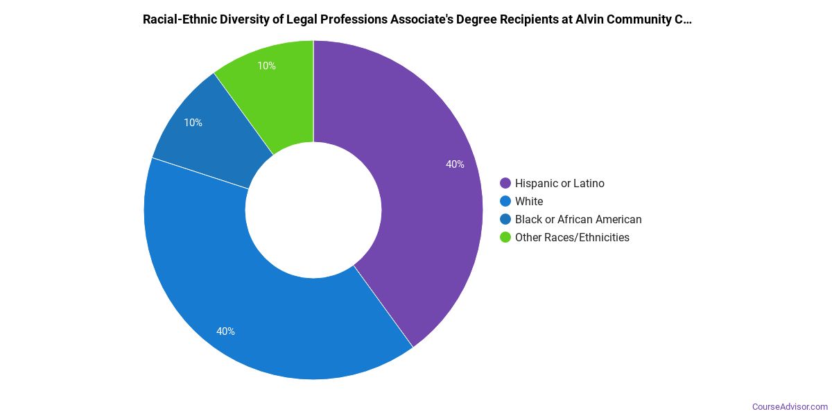 The following legal professions concentations are available at Alvin Community College. The completion numbers here include all graduates who receive any type of degree in this field from Alvin Community College. Some of these focus areas may not be available for your degree level.