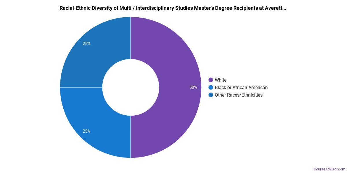 The following table and chart show the race/ethnicity for students who recently graduated from Averett University with a bachelor's in multi / interdisciplinary studies.