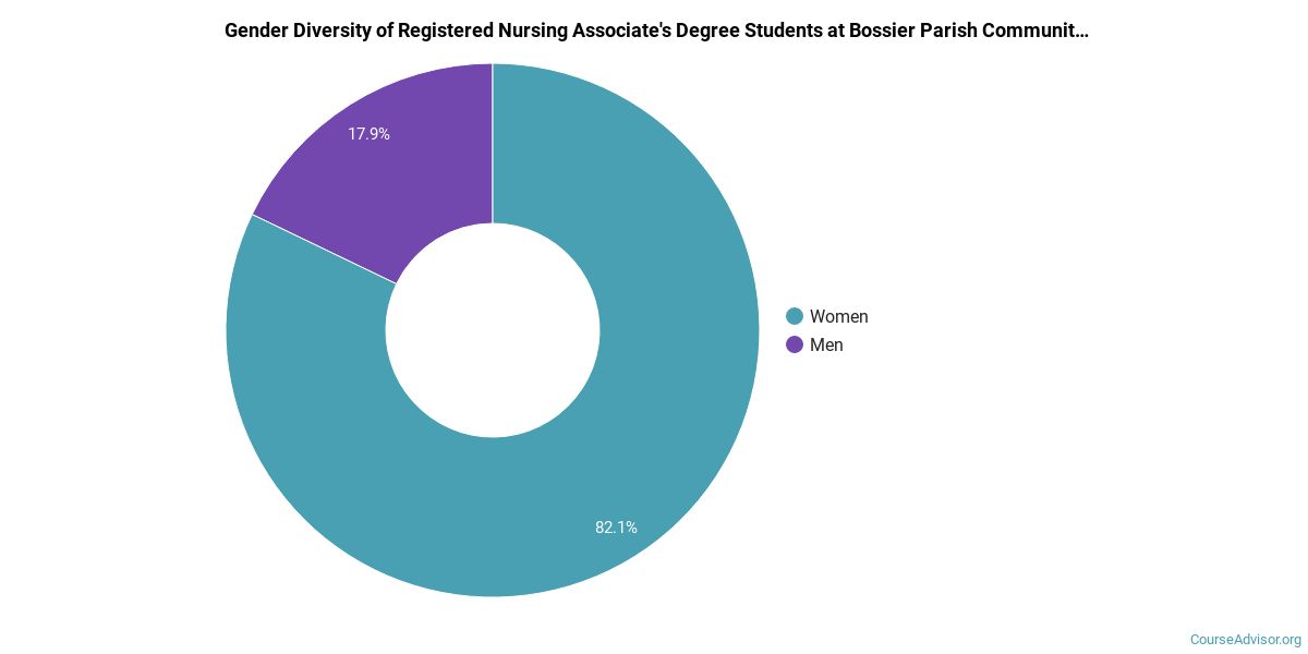 The majority of those who receive an associate's degree in registered nursing at Bossier Parish Community College are white. Around 71% fell into this category, which is below average for this degree.