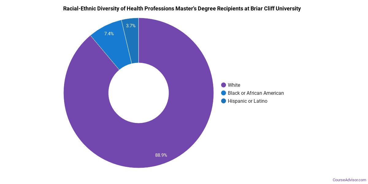 Of the students who received a health professions master's degree from Briar Cliff, 91% were white. This is above average for this degree on the natiowide level.