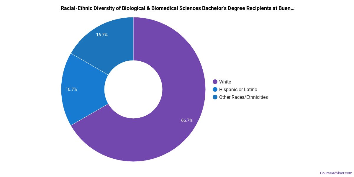 The following table and chart show the race/ethnicity for students who recently graduated from Buena Vista University with a bachelor's in biological & biomedical sciences.