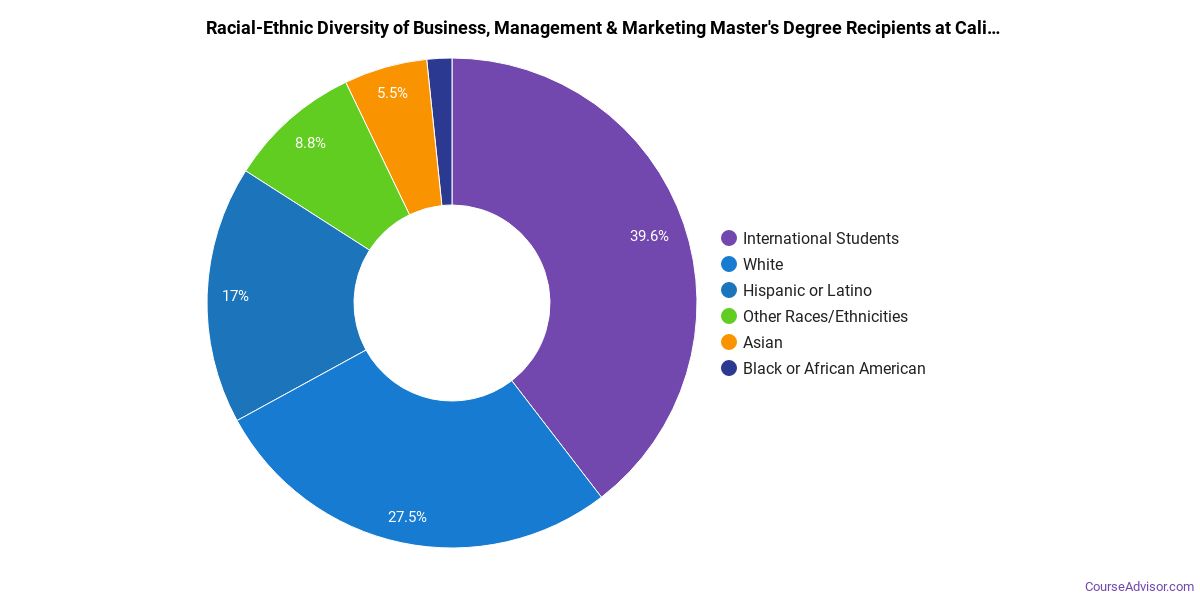 The following table and chart show the race/ethnicity for students who recently graduated from California Lutheran University with a master's in business, management & marketing.