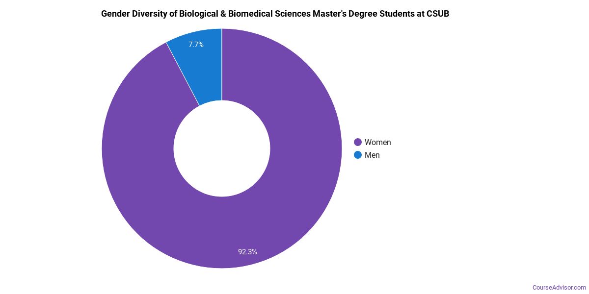Of the students who received a biological & biomedical sciences master's degree from CSUB, 100% were white. This is above average for this degree on the natiowide level.