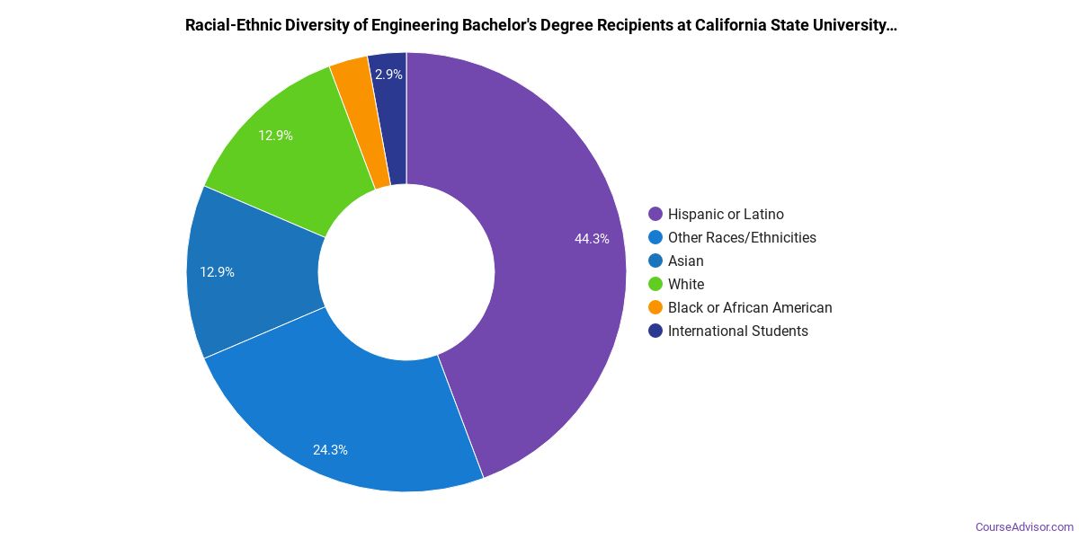 The following table and chart show the race/ethnicity for students who recently graduated from California State University - Bakersfield with a bachelor's in engineering.