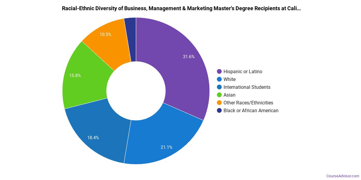 The following table and chart show the race/ethnicity for students who recently graduated from California State University - Dominguez Hills with a master's in business, management & marketing.