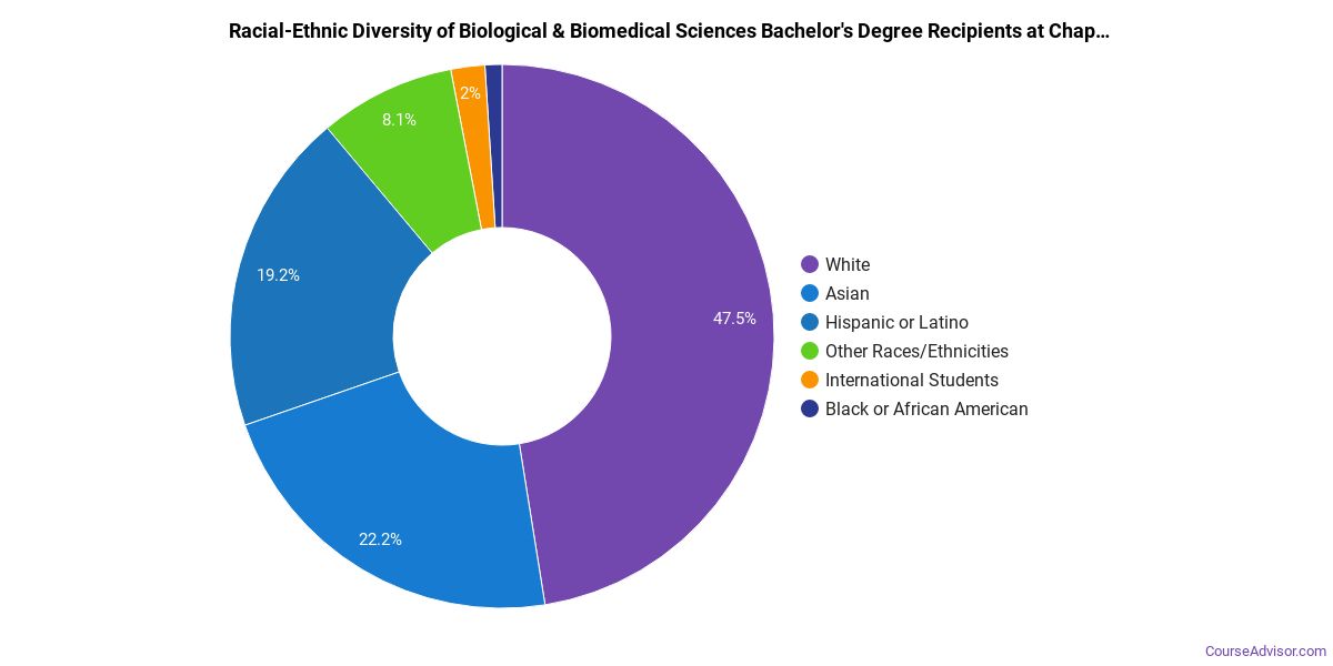Every biological & biomedical sciences school has its own distinct culture and strengths. We've pulled together some statistics and other details to help you see how the biological & biomedical sciences program at Chapman University stacks up to those at other schools.Chapman is located in Orange, California and has a total student population of 9,761.
