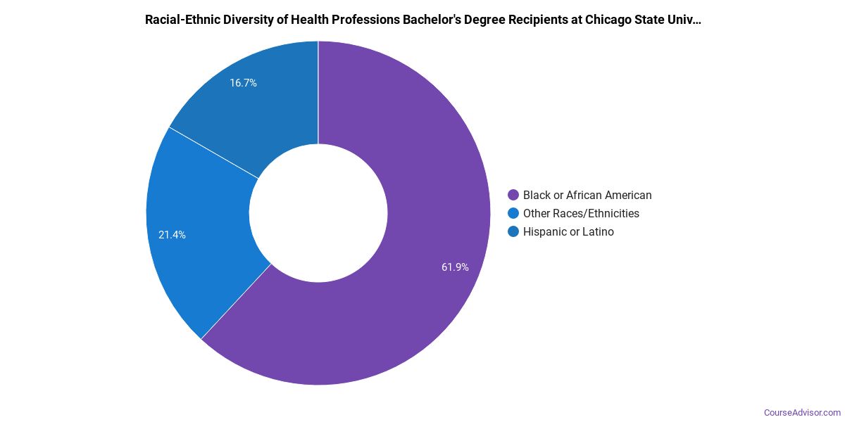 The following health professions concentations are available at Chicago State University. The table shows all degrees awarded in this field awarded for all degree levels at Chicago State University. A concentration may not be available for your level.