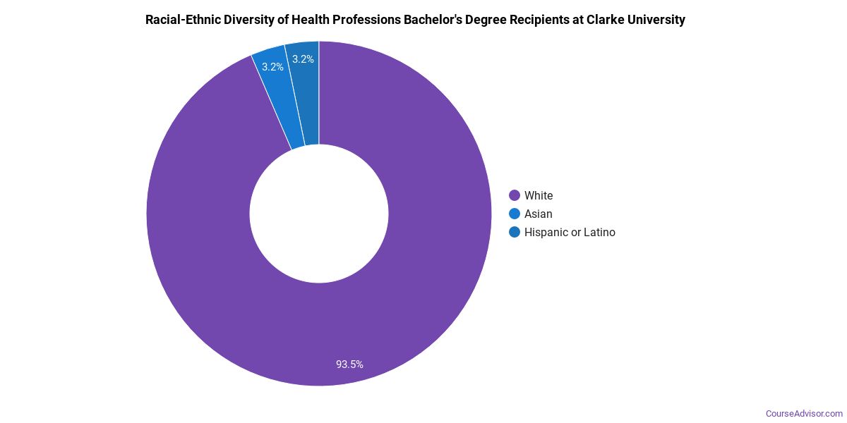 About 83% of those who receive a bachelor's degree in health professions at Clarke are white. This is above average for this degree on the nationwide level.