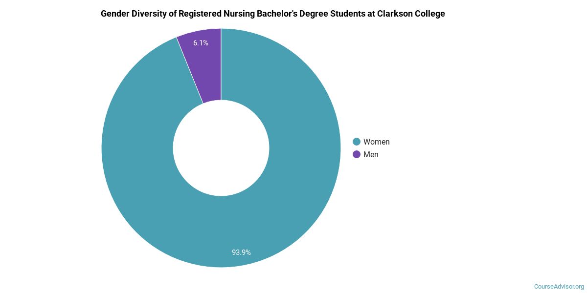 About 63% of those who receive a bachelor's degree in registered nursing at Clarkson College are white. This is above average for this degree on the nationwide level.