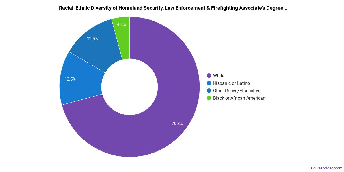 The following table and chart show the race/ethnicity for students who recently graduated from Coconino Community College with a associate's in homeland security, law enforcement & firefighting.