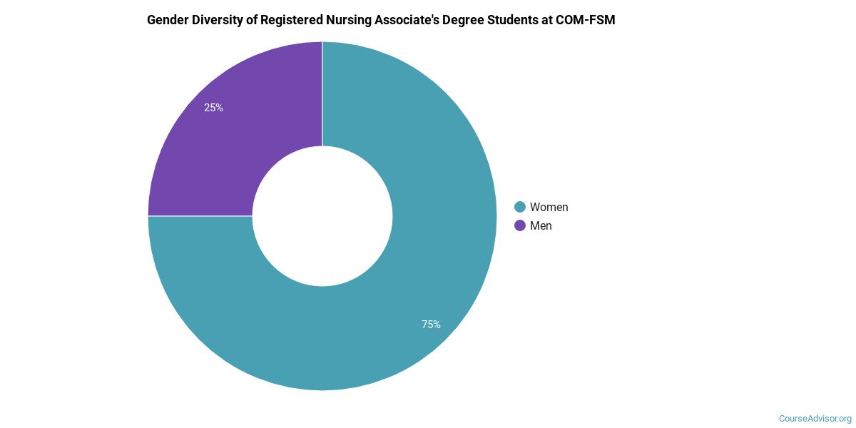 COM-FSM does a better job with serving racial-ethnic minorities than the typical school does. Its associate's program in registered nursing graduates 60% more racial-ethnic minorities than the nationwide average.*