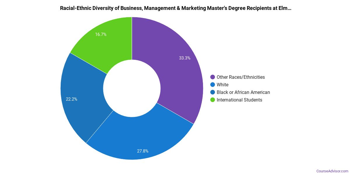 The following table and chart show the race/ethnicity for students who recently graduated from Elms College with a master's in business, management & marketing.