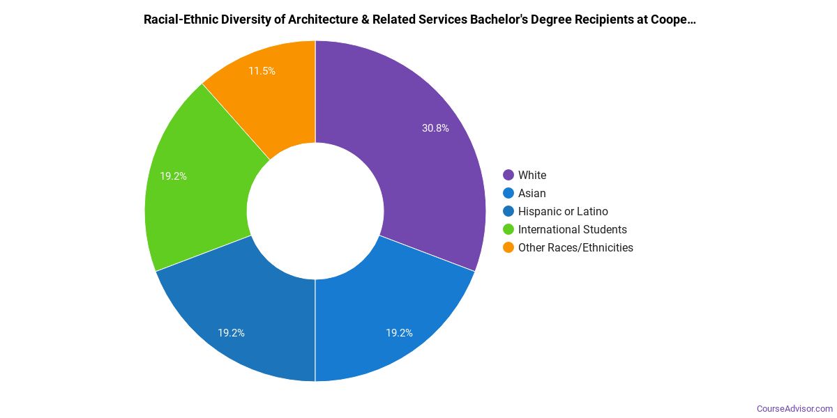 The following table and chart show the race/ethnicity for students who recently graduated from Cooper Union for the Advancement of Science and Art with a bachelor's in architecture & related services.