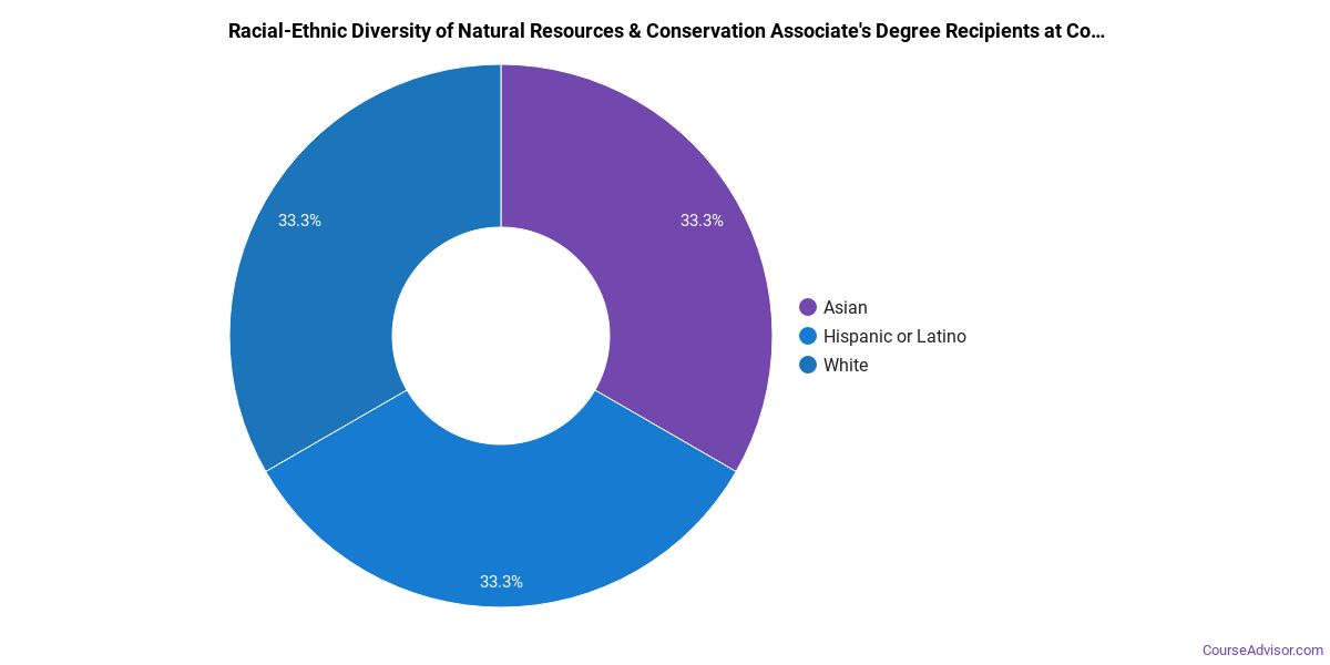 The following table and chart show the race/ethnicity for students who recently graduated from Cosumnes River College with a associate's in natural resources & conservation.