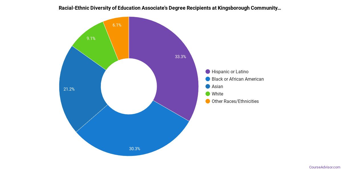 The following table and chart show the race/ethnicity for students who recently graduated from Kingsborough Community College with a associate's in education.