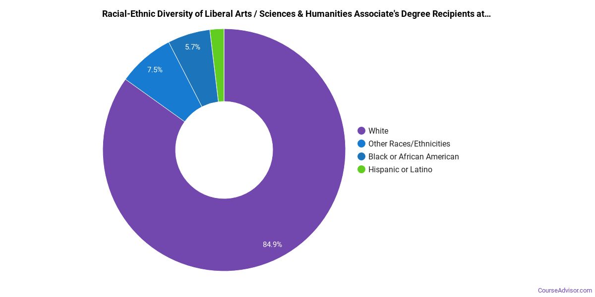 The majority of those who receive an associate's degree in liberal arts / sciences & humanities at DSLCC are white. Around 91% fell into this category, which is below average for this degree.