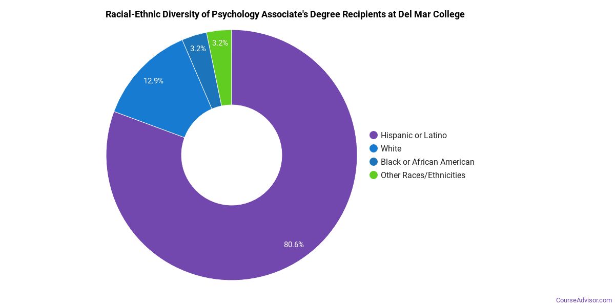 The following table and chart show the race/ethnicity for students who recently graduated from Del Mar College with a associate's in psychology.