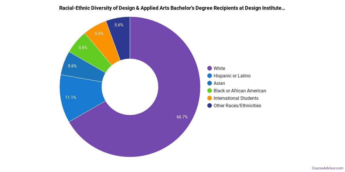 The following table and chart show the race/ethnicity for students who recently graduated from Design Institute of San Diego with a bachelor's in design.