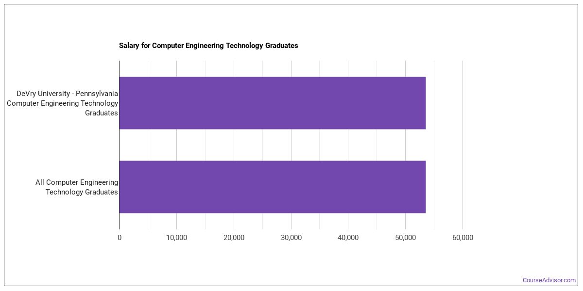 The median salary of computer engineering tech students who receive their bachelor's degree at DeVry University - Pennsylvania is $53,564. This is about the same as the yearly salary of allcomputer engineering tech bachelor's degree recipients across the nation.