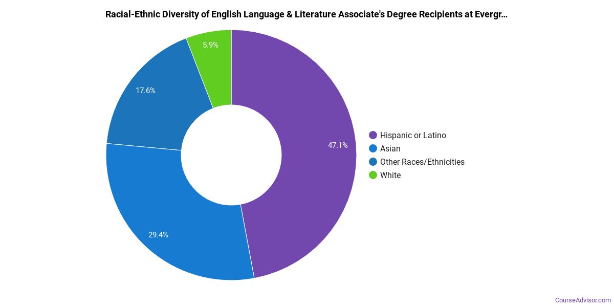 Evergreen Valley College does a better job with serving racial-ethnic minorities than the typical school does. Its associate's program in english language & literature graduates 41% more racial-ethnic minorities than the nationwide average.*
