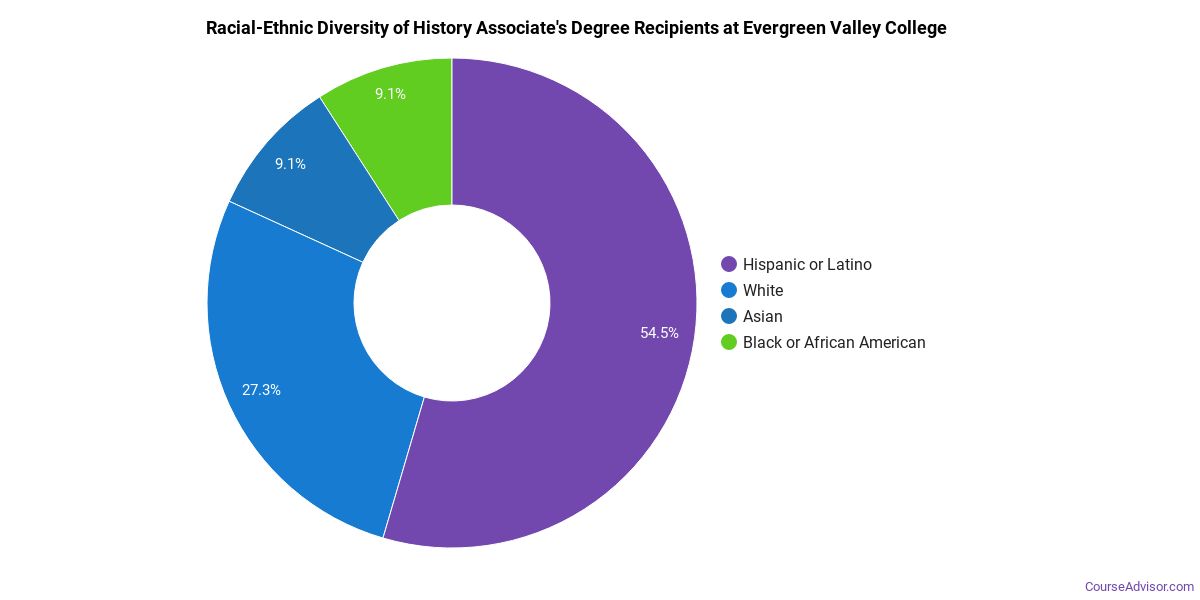 The following history concentations are available at Evergreen Valley College. The completion numbers here include all graduates who receive any type of degree in this field from Evergreen Valley College. Some of these focus areas may not be available for your degree level.