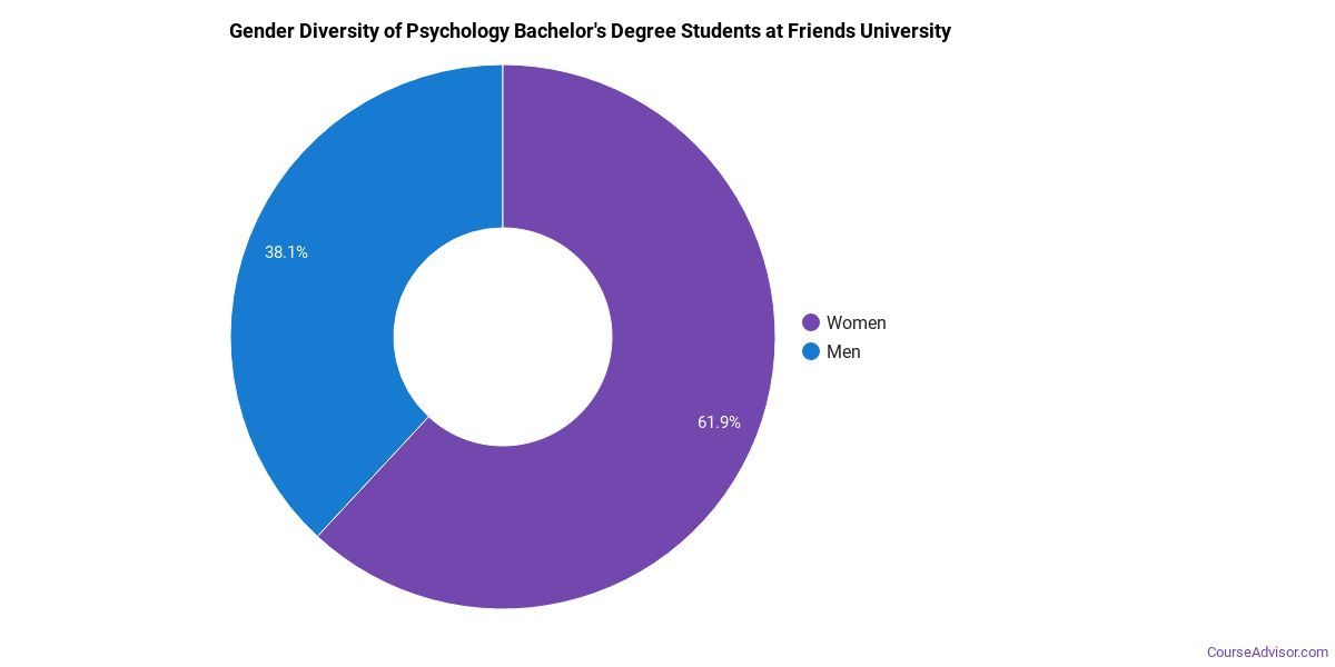 About 68% of those who receive a bachelor's degree in psychology at Friends University are white. This is above average for this degree on the nationwide level.