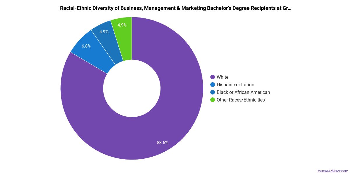 About 74% of those who receive a bachelor's degree in business, management & marketing at Grace College are white. This is above average for this degree on the nationwide level.