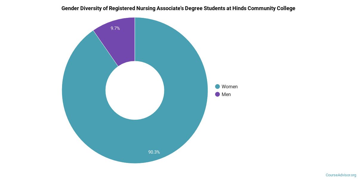 Hinds Community College does a better job with serving racial-ethnic minorities than the typical school does. Its associate's program in registered nursing graduates 16% more racial-ethnic minorities than the nationwide average.*