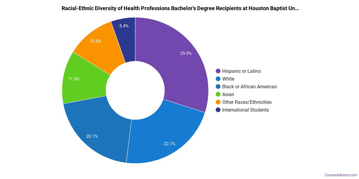 The following table and chart show the race/ethnicity for students who recently graduated from Houston Baptist University with a bachelor's in health professions.