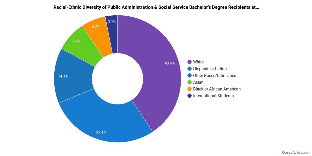 Prospective students may be interested in knowing that this school graduates 5% more racial-ethnic minorities in its public administration & social service bachelor's program than the national average.*