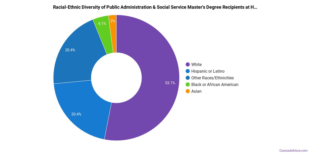 Of the students who received a public administration & social service master's degree from Humboldt State University, 57% were white. This is above average for this degree on the natiowide level.
