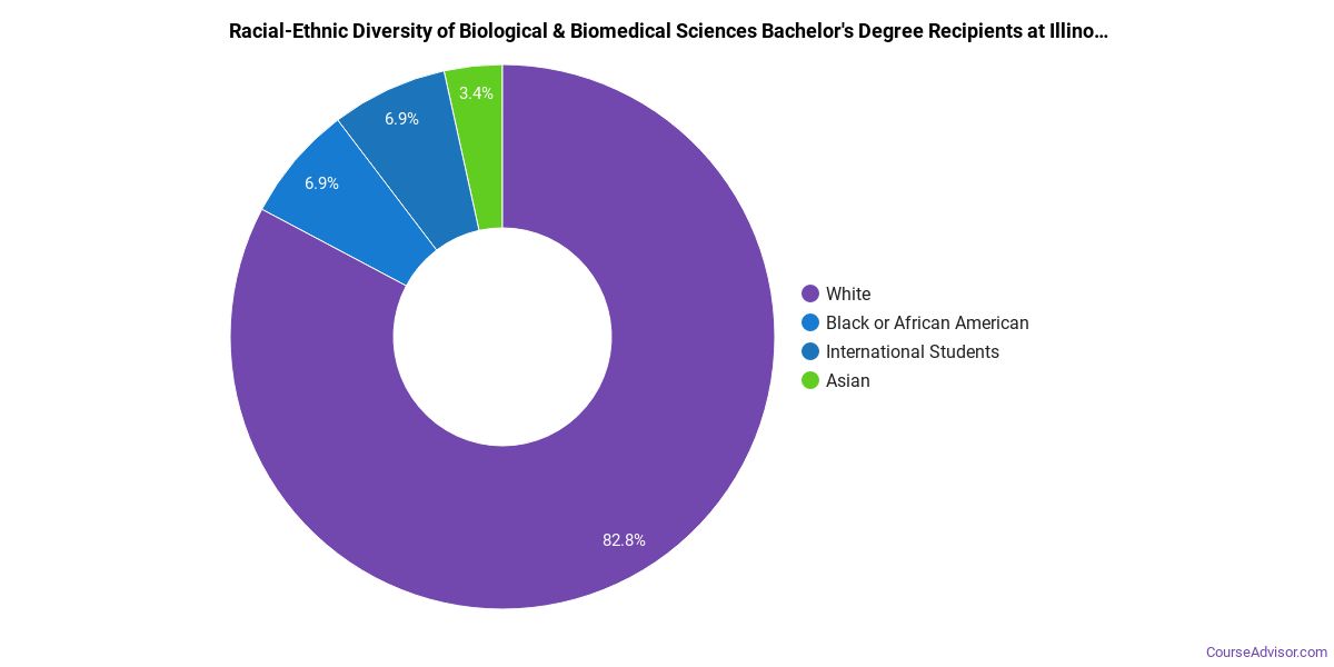 About 74% of those who receive a bachelor's degree in biological & biomedical sciences at Illinois College are white. This is above average for this degree on the nationwide level.