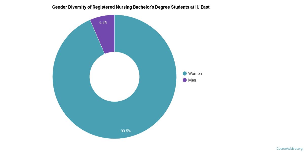 About 93% of those who receive a bachelor's degree in registered nursing at IU East are white. This is above average for this degree on the nationwide level.