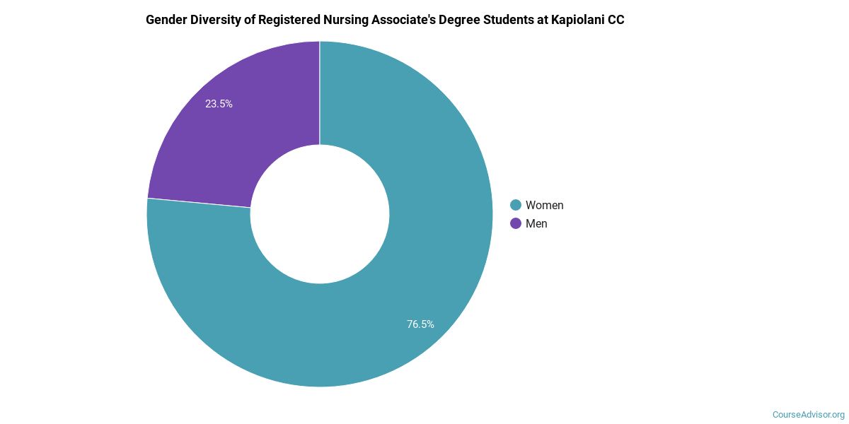 Kapiolani CC does a better job with serving racial-ethnic minorities than the typical school does. Its associate's program in registered nursing graduates 51% more racial-ethnic minorities than the nationwide average.*
