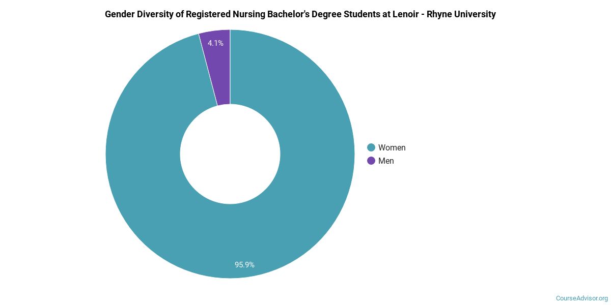 About 82% of those who receive a bachelor's degree in registered nursing at Lenoir - Rhyne University are white. This is above average for this degree on the nationwide level.
