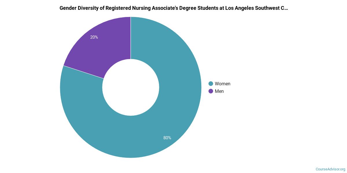 Los Angeles Southwest College does a better job with serving racial-ethnic minorities than the typical school does. Its associate's program in registered nursing graduates 50% more racial-ethnic minorities than the nationwide average.*
