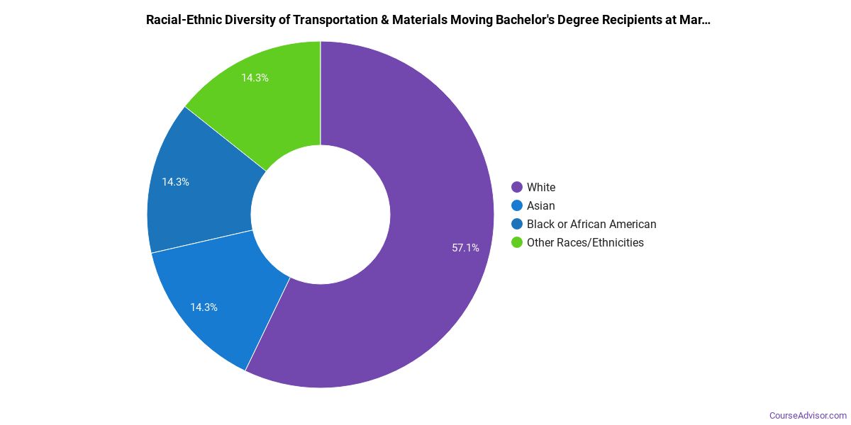 The following table and chart show the race/ethnicity for students who recently graduated from Marywood University with a bachelor's in transportation & materials moving.