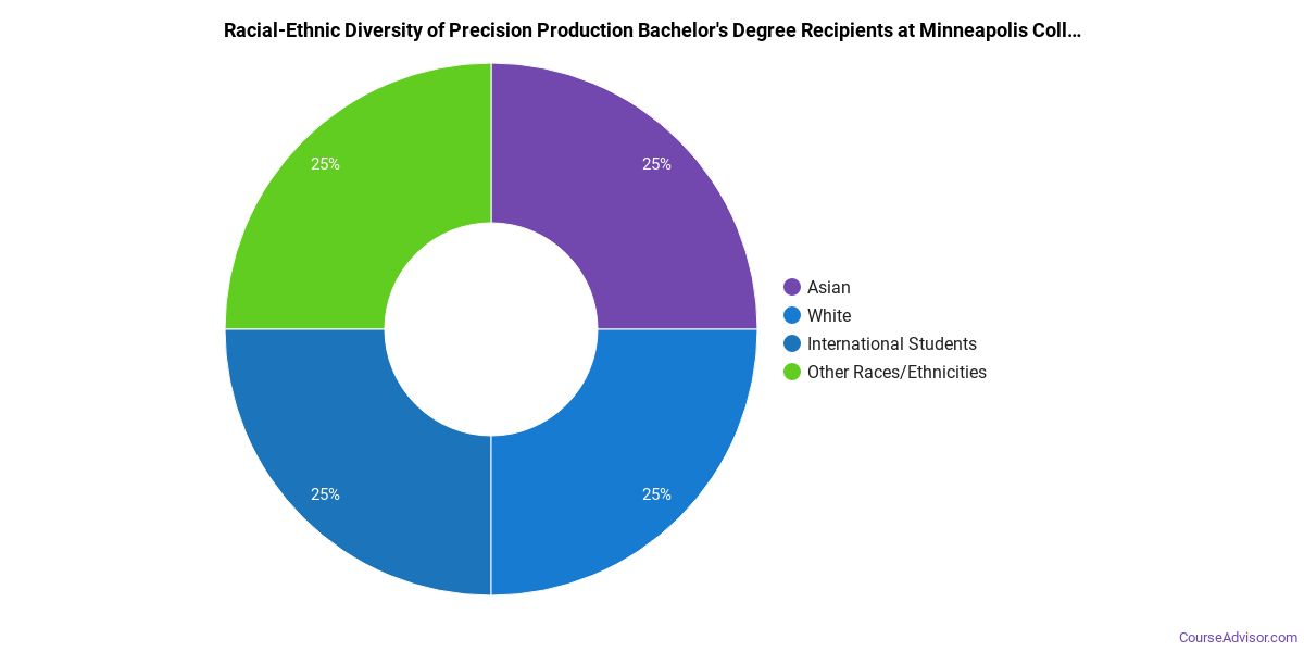 About 100% of those who receive a bachelor's degree in precision production at MCAD are white. This is above average for this degree on the nationwide level.