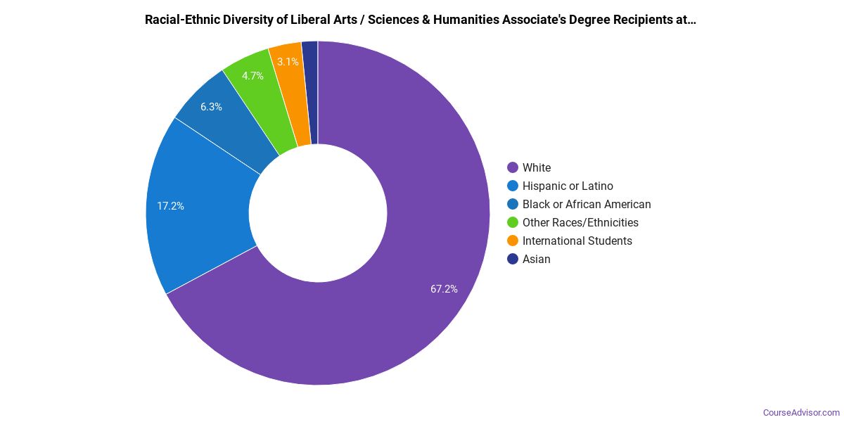 The majority of those who receive an associate's degree in liberal arts / sciences & humanities at Minnesota West are white. Around 58% fell into this category, which is below average for this degree.