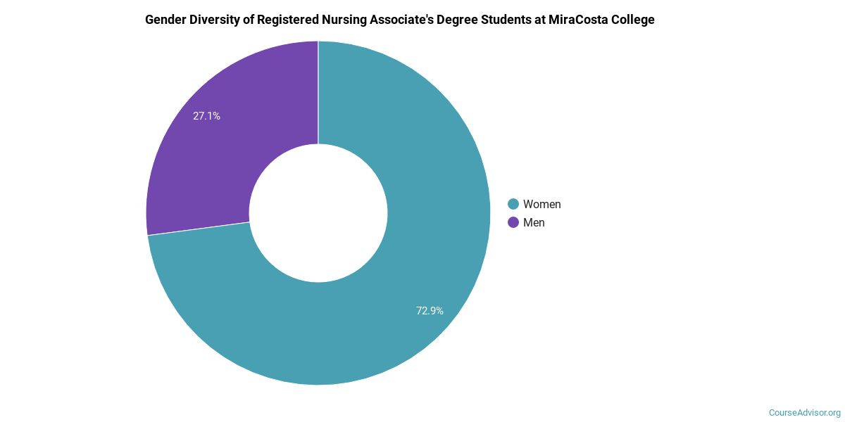 MiraCosta College does a better job with serving racial-ethnic minorities than the typical school does. Its associate's program in registered nursing graduates 20% more racial-ethnic minorities than the nationwide average.*