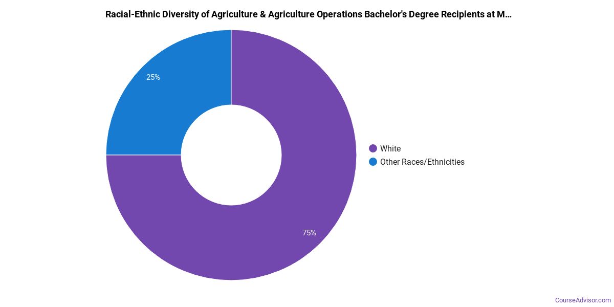 About 100% of those who receive a bachelor's degree in agriculture & agriculture operations at Missouri Valley College are white. This is above average for this degree on the nationwide level.