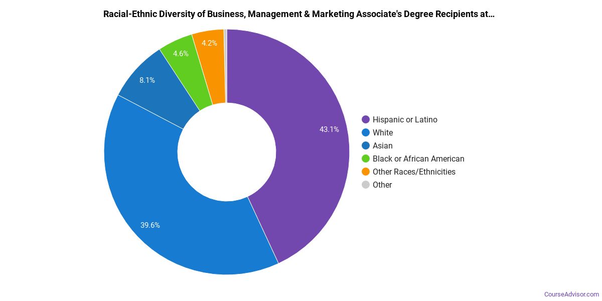The following table and chart show the race/ethnicity for students who recently graduated from Modesto Junior College with a associate's in business, management & marketing.