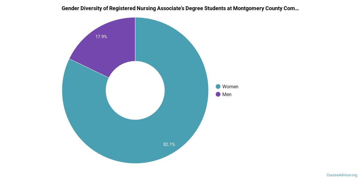 The majority of those who receive an associate's degree in registered nursing at Montco are white. Around 59% fell into this category, which is below average for this degree.