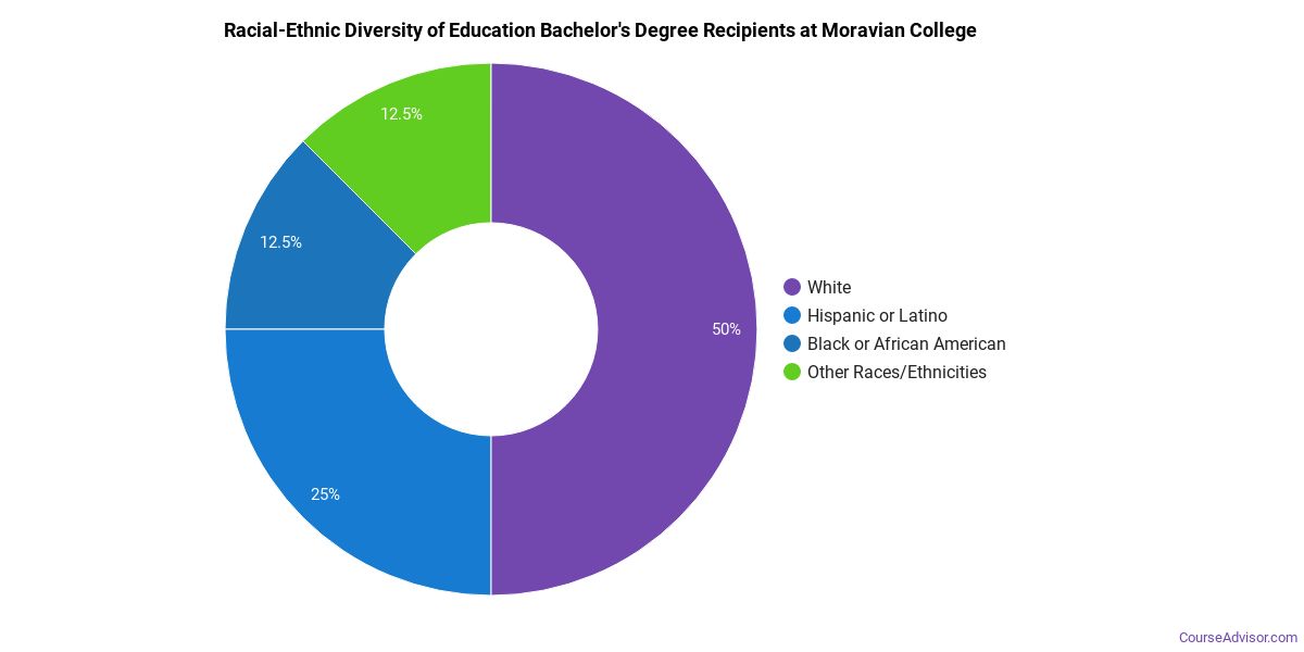 About 67% of those who receive a bachelor's degree in education at Moravian are white. This is above average for this degree on the nationwide level. Prospective students may be interested in knowing that this school graduates 2% more racial-ethnic minorities in its education bachelor's program than the national average.*