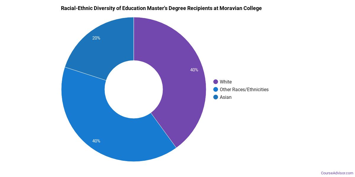 Of the students who received a education master's degree from Moravian, 62% were white. This is typical for this degree on the natiowide level.