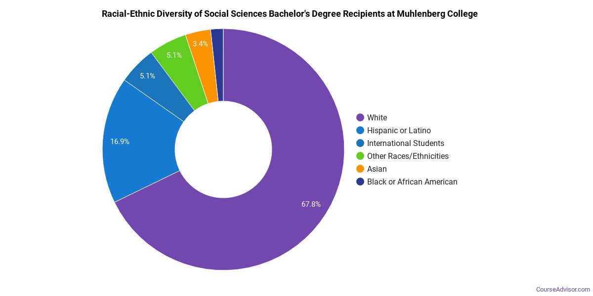 About 64% of those who receive a bachelor's degree in social sciences at Muhlenberg are white. This is above average for this degree on the nationwide level.