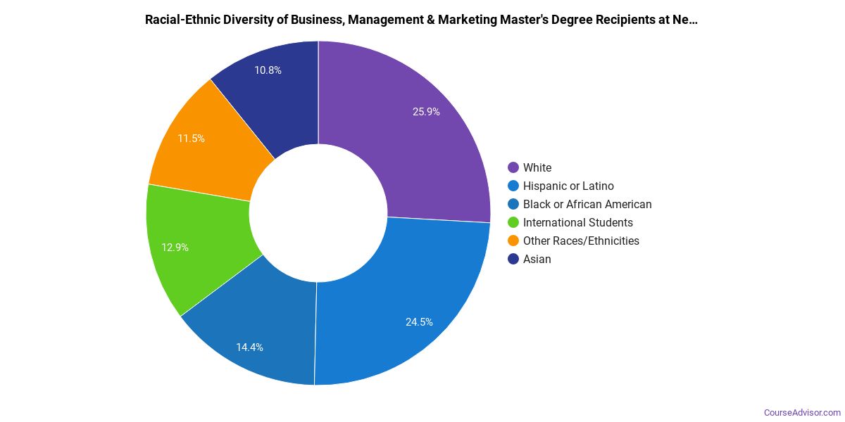 The following table and chart show the race/ethnicity for students who recently graduated from New Jersey City University with a master's in business, management & marketing.