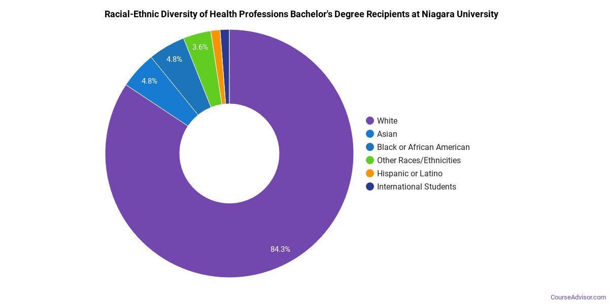 About 79% of those who receive a bachelor's degree in health professions at Niagara are white. This is above average for this degree on the nationwide level.